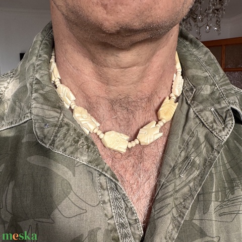 Bohém csont nyaklánc, elefánt csont ékszer, retro vintage ékszer, midcentury ékszer, nyaklánc, nyakék 70-es évekből