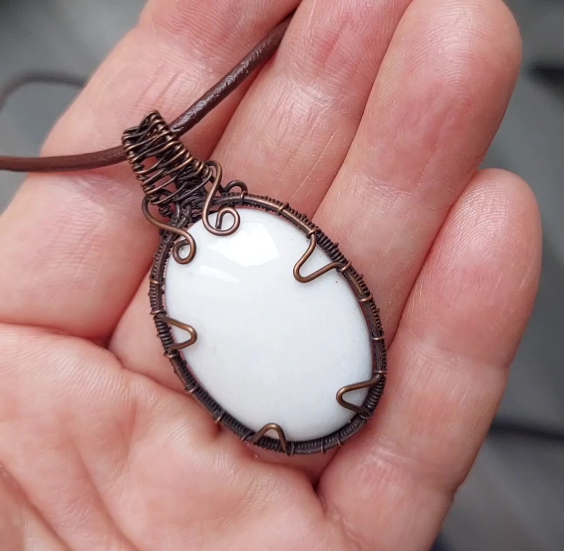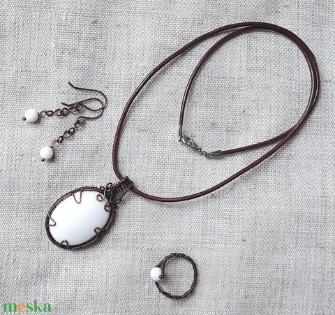 Vörösréz drótékszer szett fehér jáde kövekkel