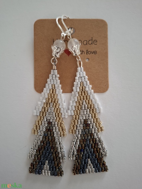 - Anyaga: miyuki gyöngy, fireline damilcérna, sterling ezüst fülbevaló akasztó, fehér jade gyöngy, ezüstözött gyöngykupak