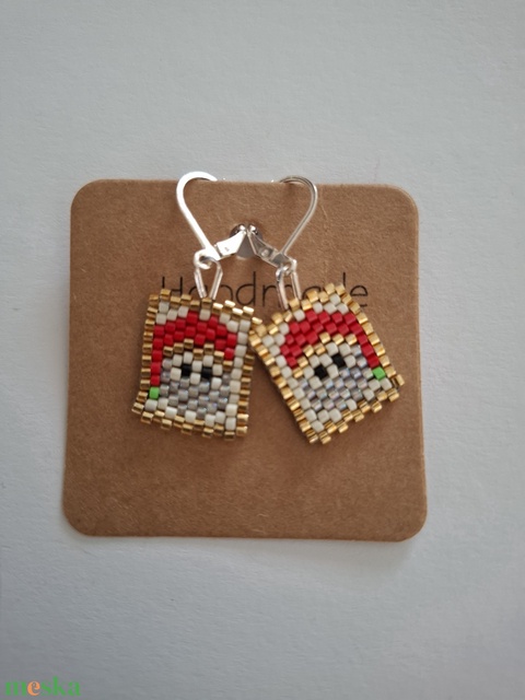 Karácsonyi fülbevaló - télapó / Peyote fülbevaló sterling ezüst akasztóval.