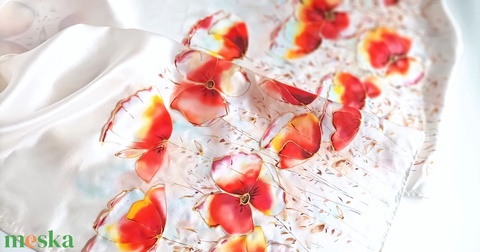 Kézzel festett, művészi és hordható sálak tiszta selyemből. Időtálló érték, természetesen.