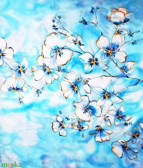 Kézzel festett, művészi és hordható sálak tiszta selyemből. Időtálló érték, természetesen.
