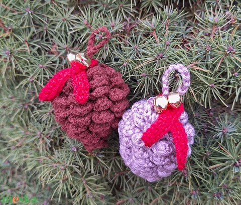 Horgolt toboz karácsonyfadísz csengettyűvel - 2 db-os szett