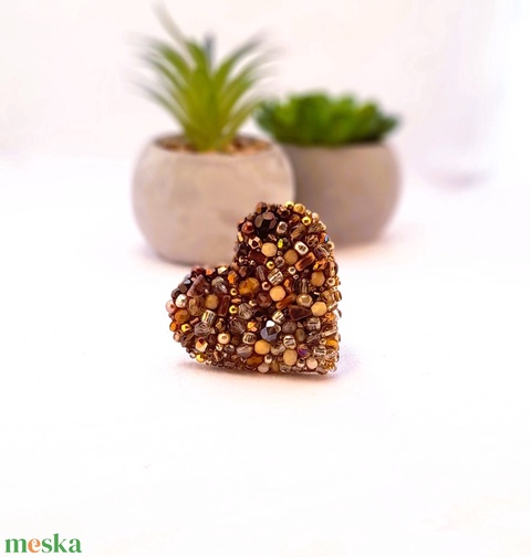 - Anyaga: filc, üveggyöngy, fém kitűző alap, himzőcérna