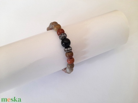 - Anyaga: óceán jáspis, onix / fekete achát, strasszos gyöngyök, gumidamil