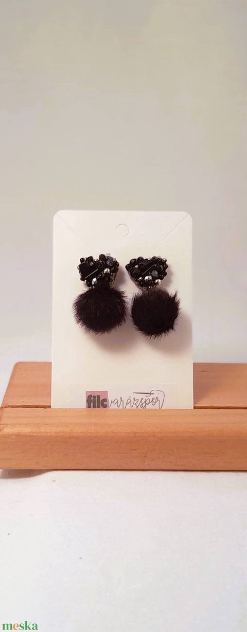 Fekete gyöngyös , nyusziszőr pom-pom-os fülbevaló.2.