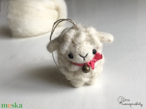 Tűnemezelt csengős bárány karácsonyfadísz, dekoráció