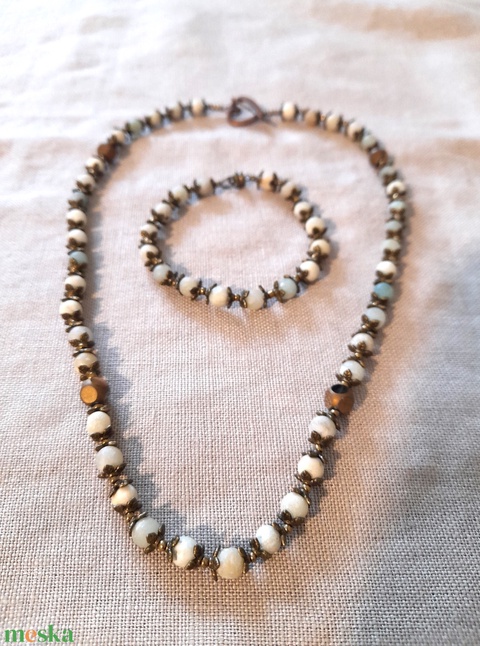 Amazonit ásvány karkötő - nyaklánc szett / Amazonit ásványkarkötő / Amazonit ásványnyaklánc / vintázs hatású ékszerszett