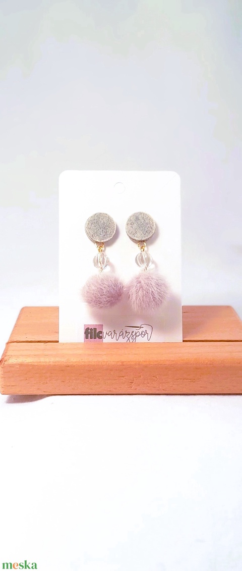 - Anyaga: filc, üveggyöngy, antiallergén fém szerelék, szilikon hátoldal, himzőcérna, pom-pom