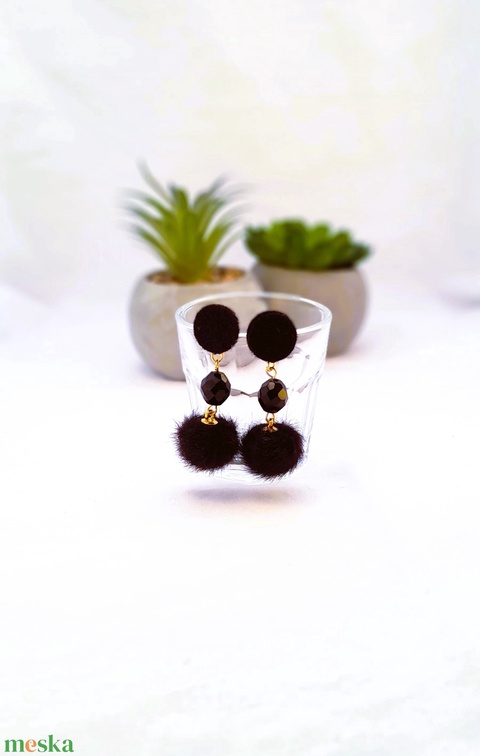 - Anyaga: filc, üveggyöngy, antiallergén fém szerelék, szilikon hátoldal, himzőcérna, pom-pom