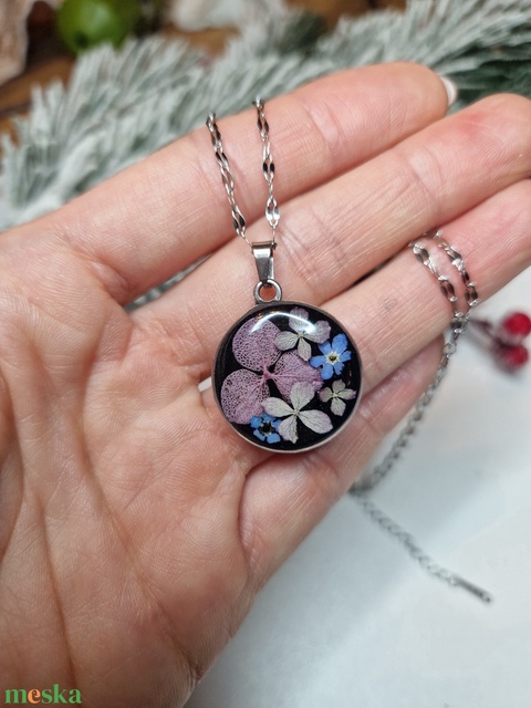 - Anyaga: nemesacél, préselt virágok, műgyanta