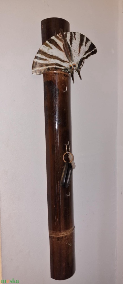 Bambusz kulcstartó tűzzománc kardos lepke (pillangó) dekorral