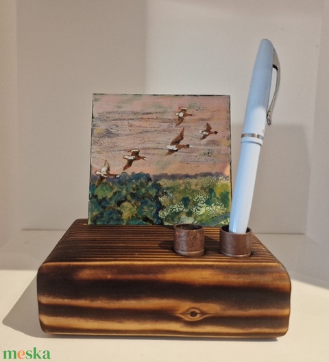 Asztali tolltartó tűzzomác képpel vadludakról