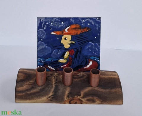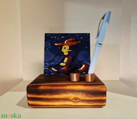 Asztali tolltartó tűzzomác képpel "Éjjeli csónakos" címmel