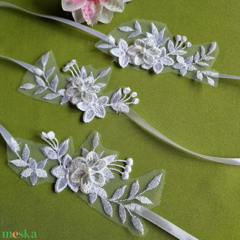 ESKÜVŐ CSD46 - Hímzett csipke csuklódísz fehér szatén virággal