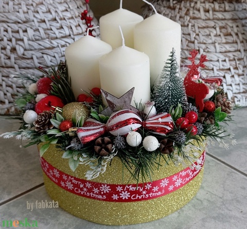- Anyaga: gumivirág, szalmaalap, ragasztó, termések, masni, gyertya, angyal, róka, szaloncukor