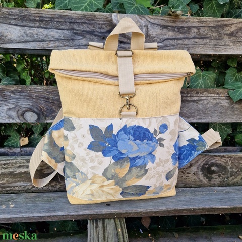 RE'A dizájn Light Blue Roses rolltop hátizsák – S méret