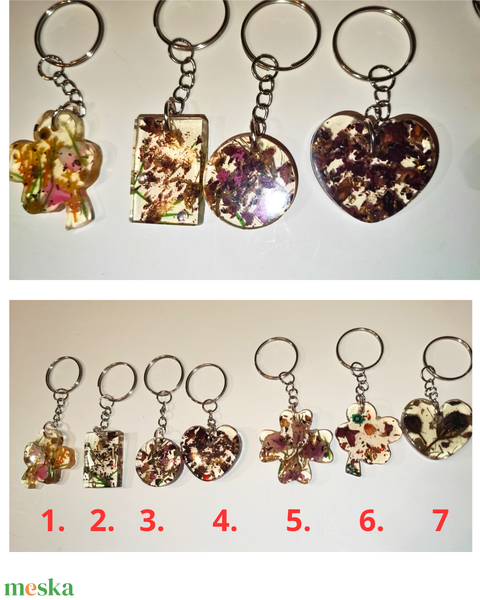 Epoxigyanta kulcstartó, átlátszó. Kulcstartó szárított virágokkal. Költség 1 darab termékre
