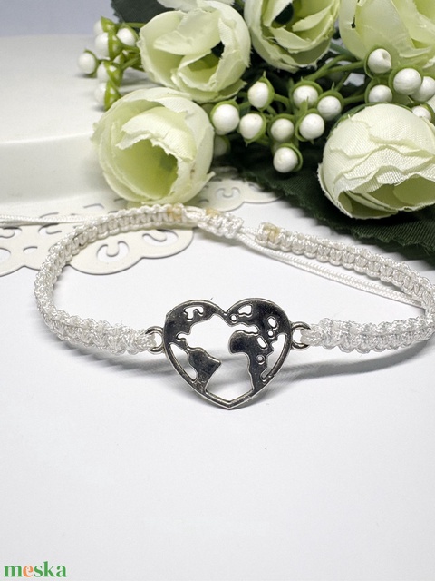 Fonott makramé szíves karkötő fehér