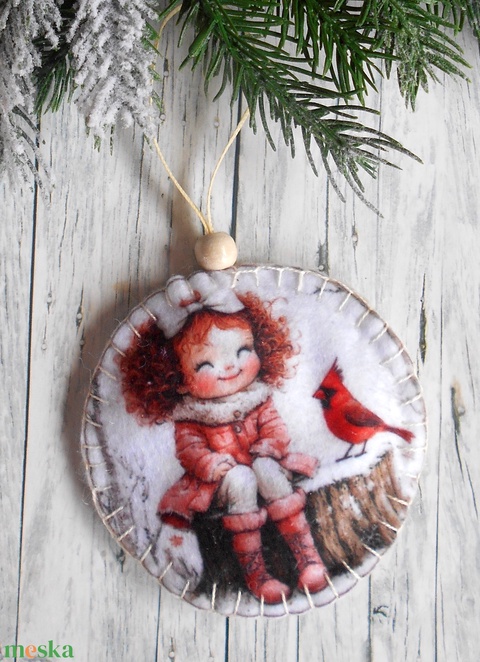 Kislány madárkával 2.kör alakú karácsonyfadísz
