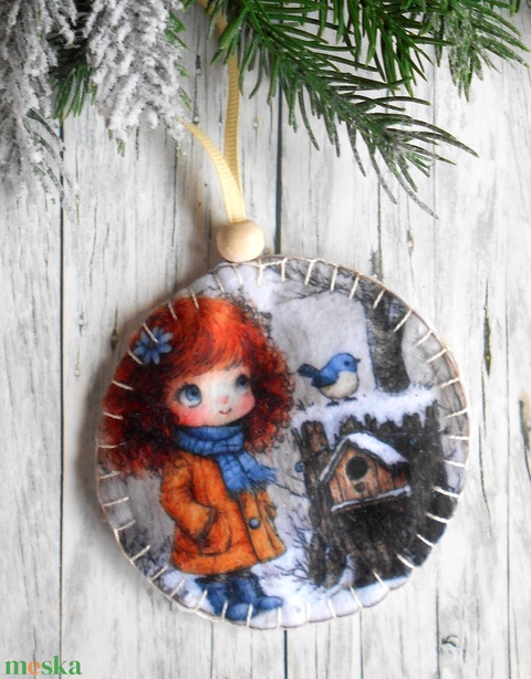 Kislány madárkával 4.kör alakú karácsonyfadísz