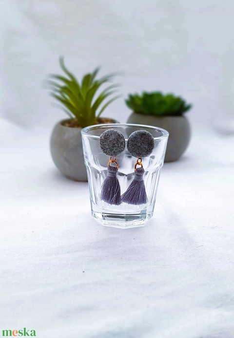 Filc bojtos fülbevaló. Szürke.