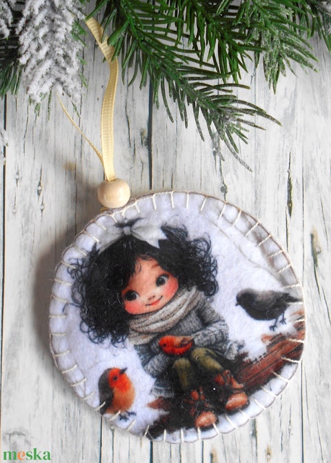 Kislány madárkával 6.kör alakú karácsonyfadísz