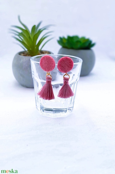 Filc bojtos fülbevaló. Mályva.