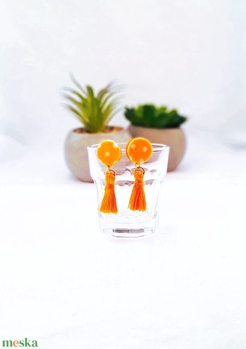 Filc bojtos fülbevaló. pöttyös narancs.