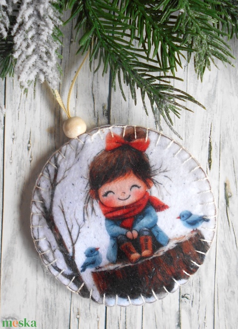 Kislány madárkával 9.kör alakú karácsonyfadísz