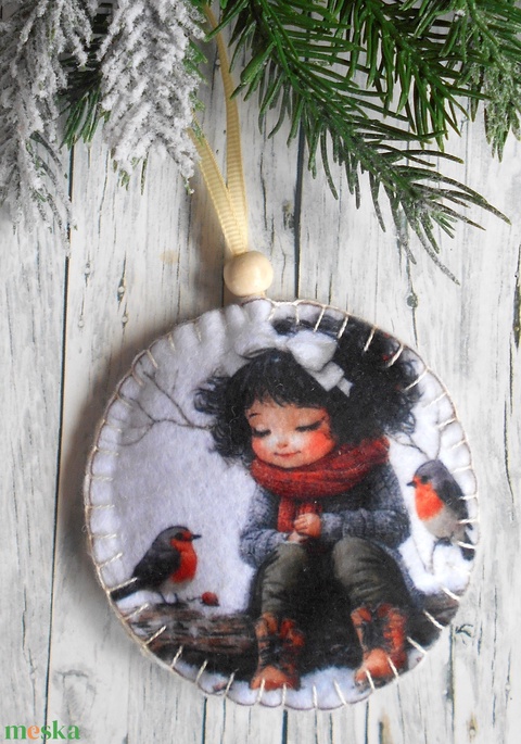 Kislány madárkával 11.kör alakú karácsonyfadísz
