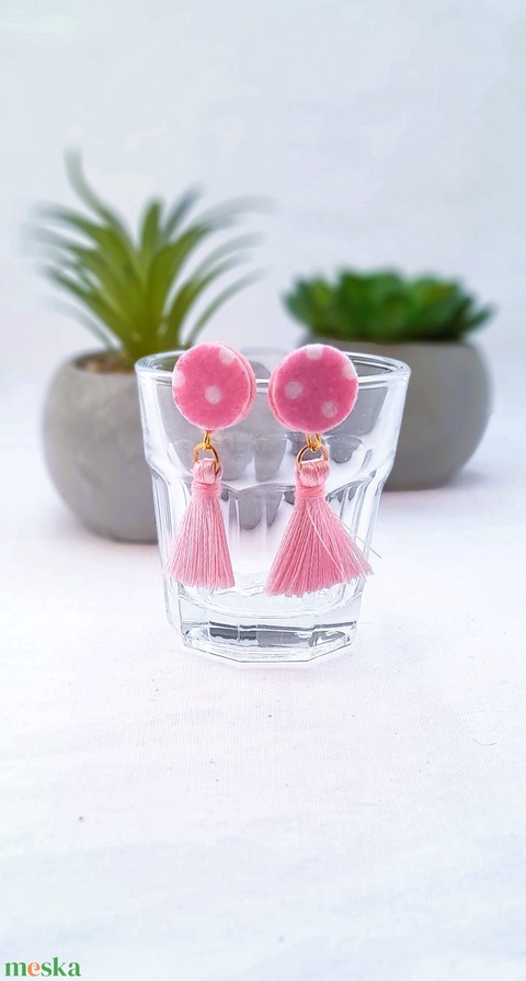 Filc bojtos fülbevaló. pöttyös rózsaszín.
