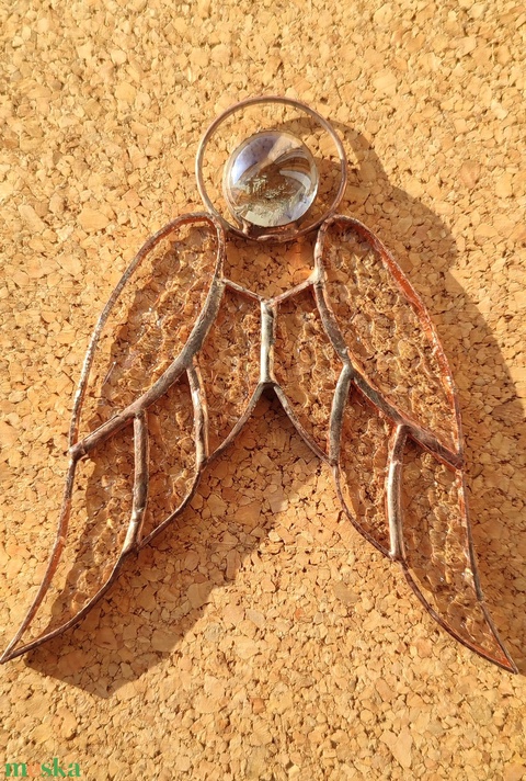 - Anyaga: szines üveg, rézfólia, rézdrót, ón