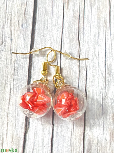 - Anyaga: fülbevaló alap, fém alkatrész, üveggömb, süthető gyurma