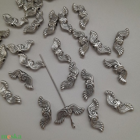 Fém angyalszárny köztes - 18x7mm - antik ezüst szín - választható kiszerelés