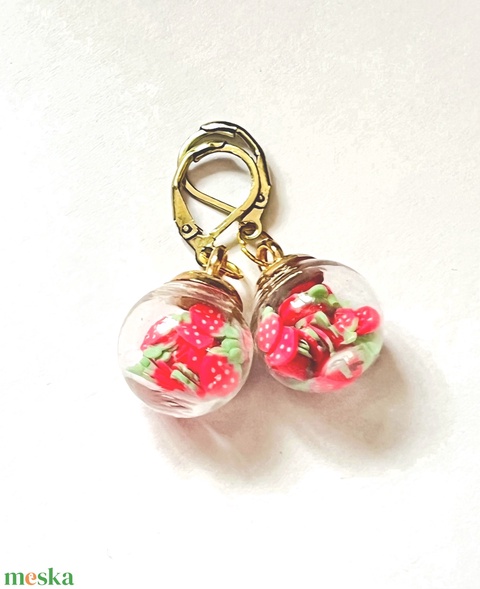 - Anyaga: fülbevaló alap, fém alkatrész, üveggömb, süthető gyurma