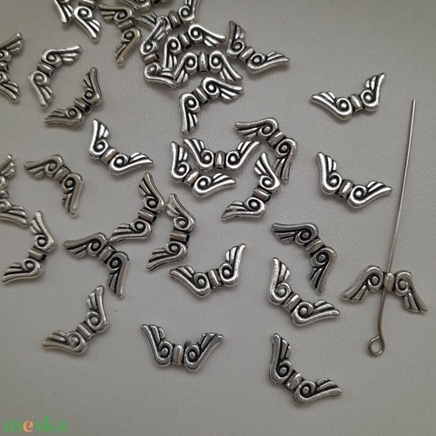 Fém angyalszárny köztes - 16x7mm - antik ezüst szín - választható kiszerelés
