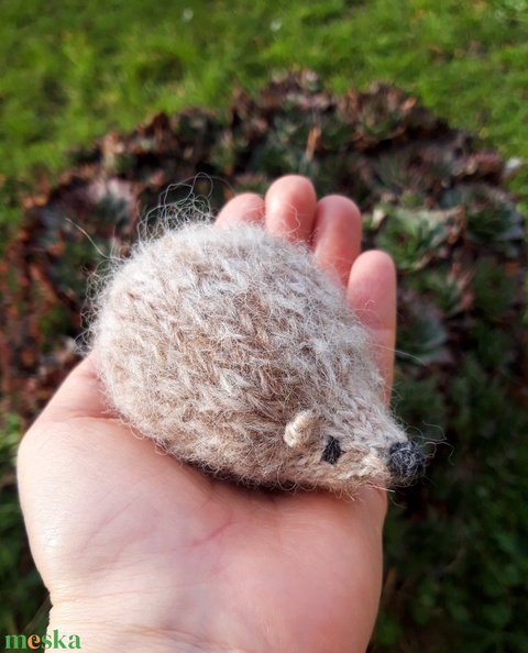 Kötött kézműves süni gyapjúból-bézses tüskés