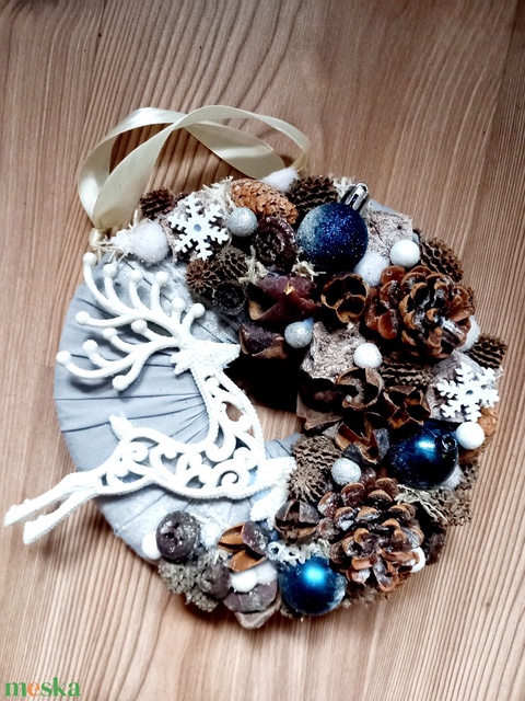 TÉLI TÁJ téli-kék adventi koszorú, adventi asztaldísz, ünnepi dekoráció, karácsonyi dísz