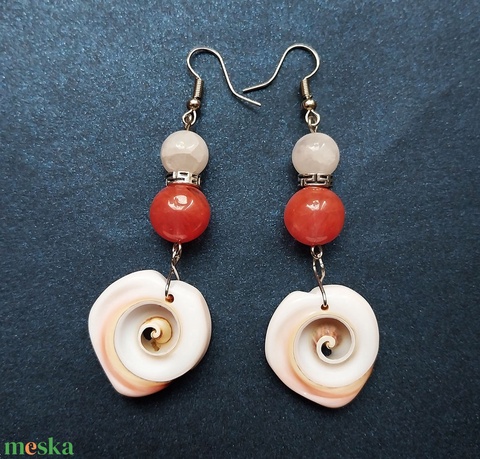 fülbevaló akasztó, tengeri csigák, ásványgyöngyök