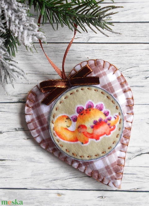 Dínókarácsony 5. kockás szív alakú karácsonyfadísz