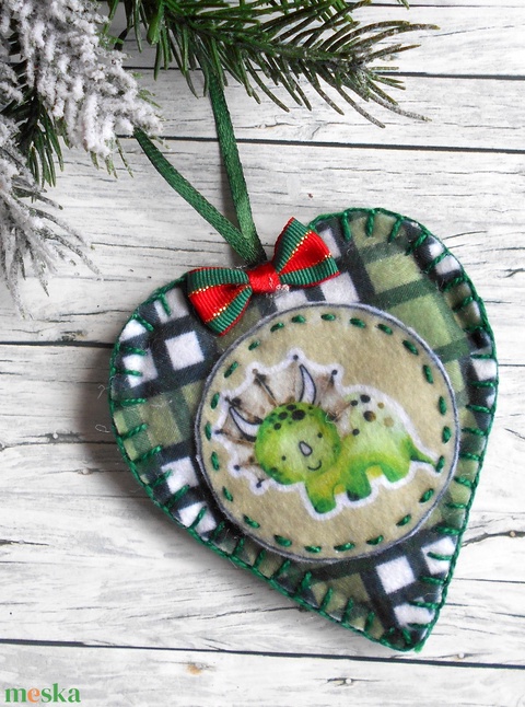 Dínókarácsony 6. kockás szív alakú karácsonyfadísz