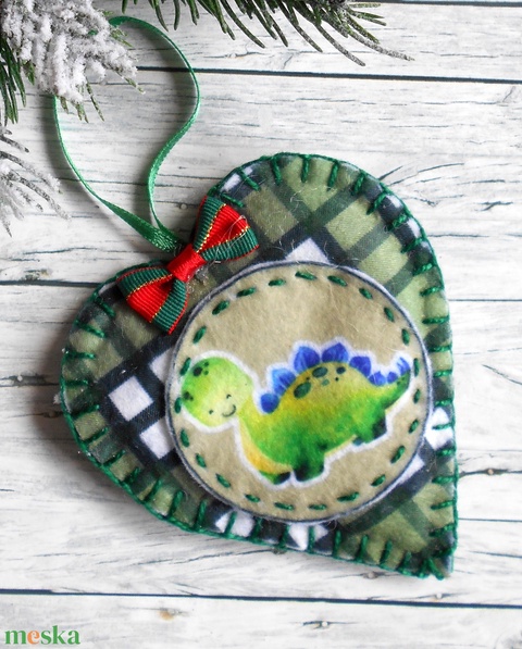 Dínókarácsony 8. kockás szív alakú karácsonyfadísz