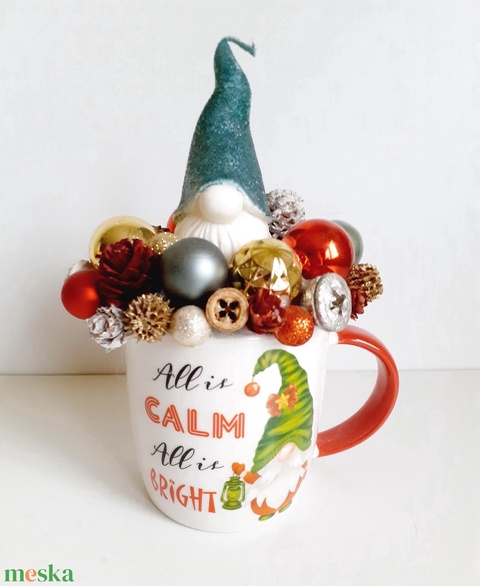 Karácsonyi pohárdísz Manó gyertyával