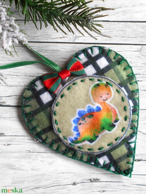 Dínókarácsony 9. kockás szív alakú karácsonyfadísz