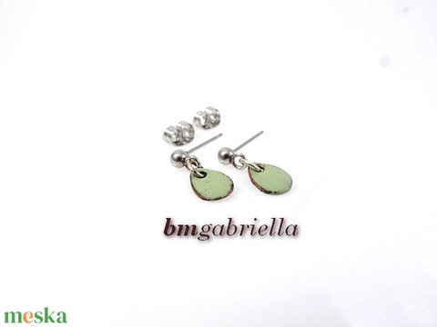 Apró csepp - tűzzománc bedugós fülbevaló - kézműves ékszer -halványzöld