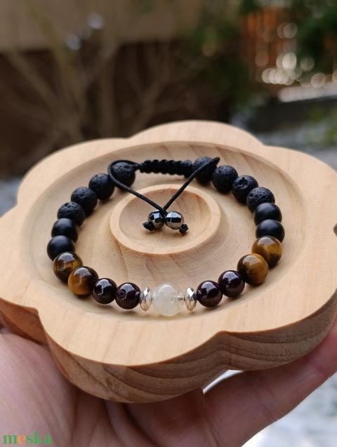 - Anyaga: microcord, gránát, matt ónix, tigrisszem, lávakő, hematit, citrin