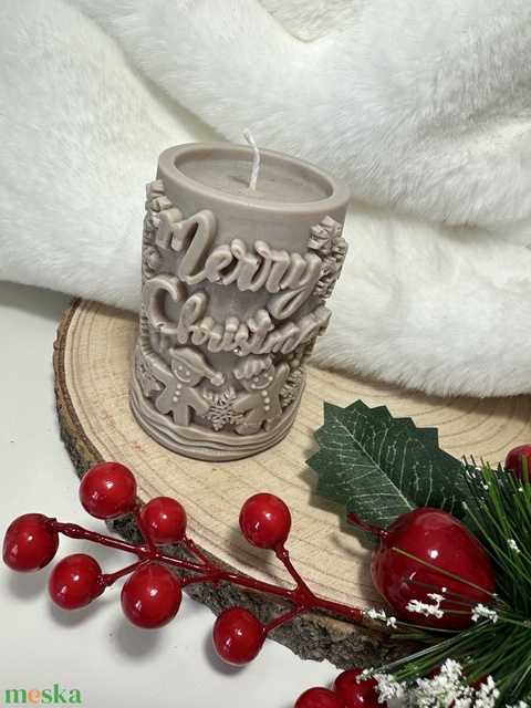 Mézeskalácsos Karácsonyi Henger Gyertya - Barna
