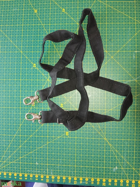 - Anyaga: pamut vászon, nikkel karabiner, nikkel pánt, cérna