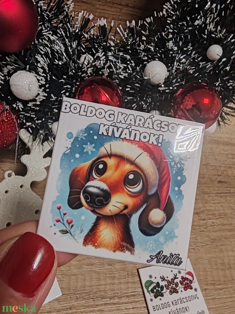 Karácsonyi köszönőajándék ügyfeleknek – Egyedi, saját fotós/logós hűtőmágnes (5×5 cm)